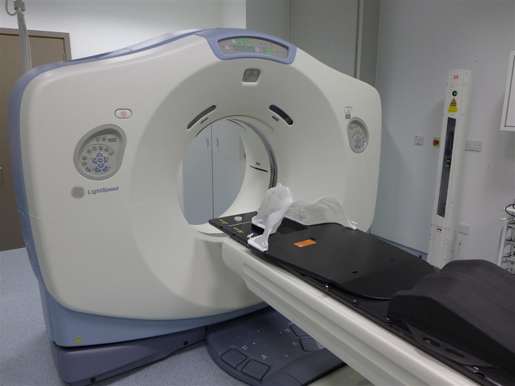 Following the successful creation of your mask, you are taken to the CT scanner. This is another room with a large white machine resembling a doughnut with a table in front.